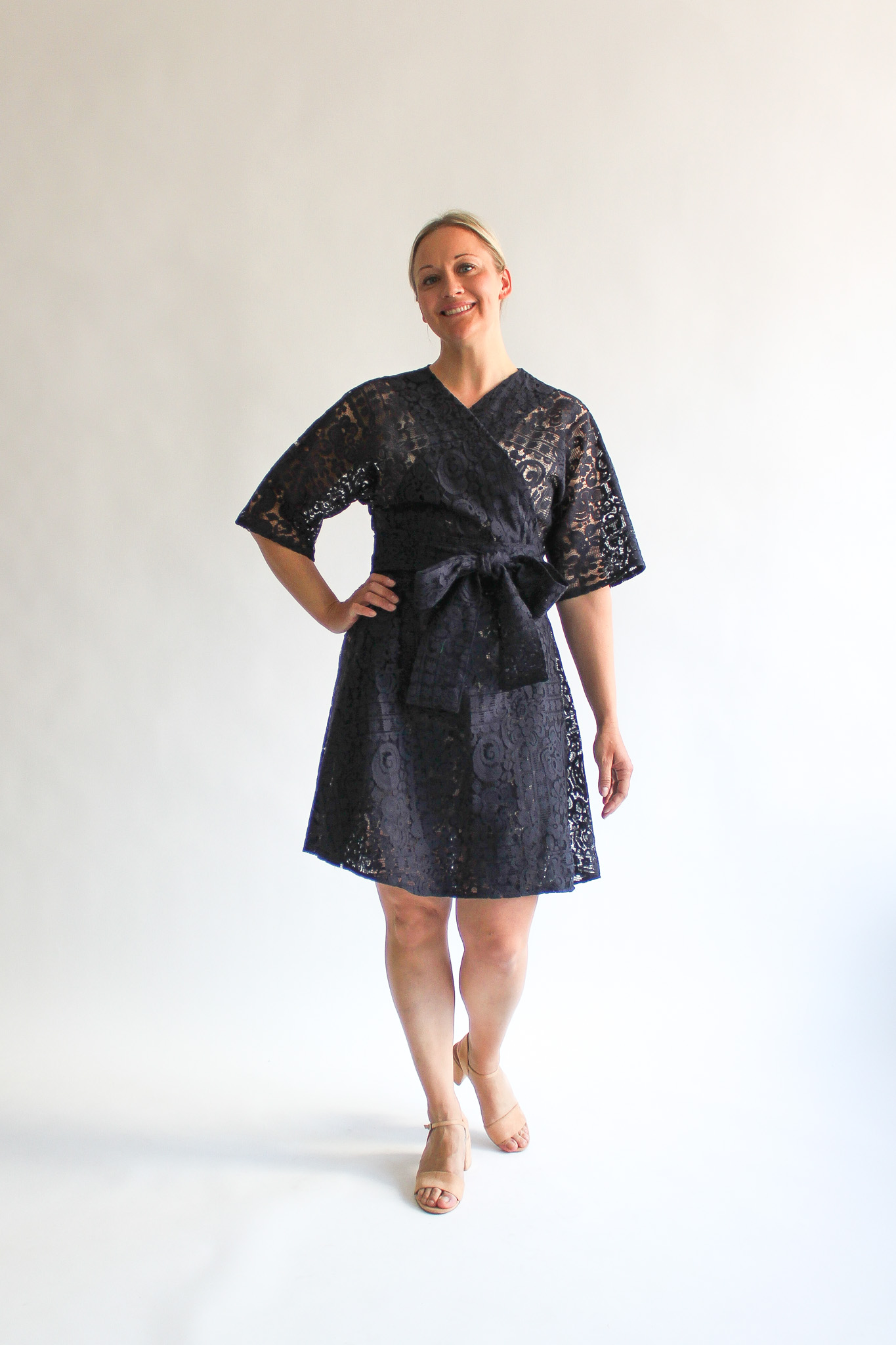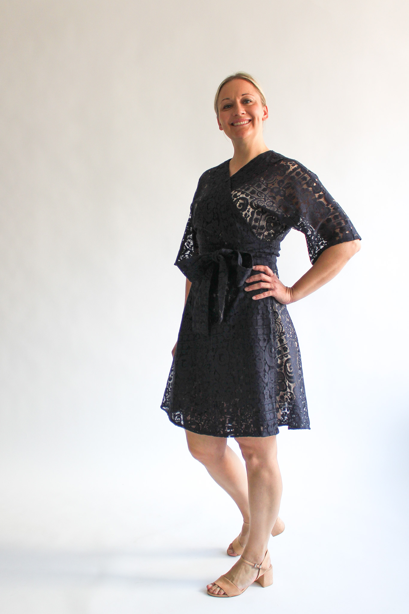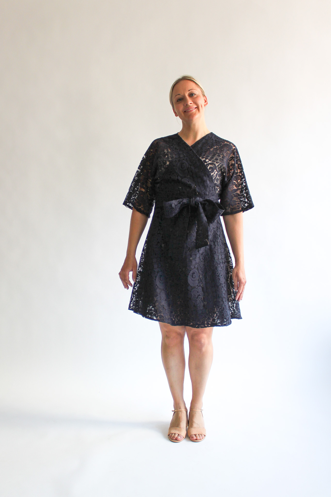 Marina lace mini wrap dress